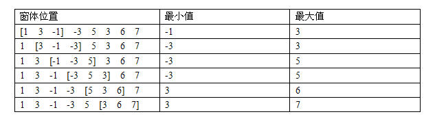给你一个长度为$N$的数组,一个长为$K$的滑动的窗体从最左移至最右端,你只能见到窗口的$K$个数,每次窗体向右移动一位,如下图: