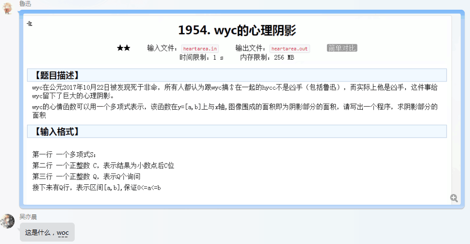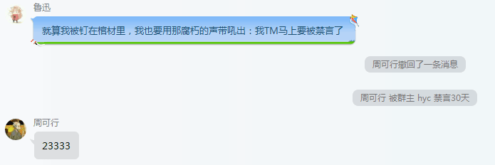 「大新闻」2017年10月22日事变 发表于 2017-10-22 更新于 2019-06-10 分类于 OI 阅读次数: Valine: 今天我们群里发生了一系列事情,下面用图片的方式分享出来。 图中的“鲁迅”为pointedpoints伪装(感觉要被封号)。然后xzl运行了“辈分的争夺”后。。。 事件过于宏伟,故开一贴特此记录。 相关文章 「随笔7」博客更新日志+新年快乐 近期香港机场相关个人评论 「暂时置顶」「随笔9」回归与新版权声明 「随笔8」博客及模板相关 「达成成就」累计600篇文章+bsoj超过root 姥爷们赏瓶冰阔落吧~ 打赏 微信支付 支付宝 本文作者: Bill Yang 本文链接: https://blog.bill.moe/2017-10-22/ 版权声明: 本博客所有文章除特别声明外,均采用 BY-NC-SA 许可协议。转载请注明出处!