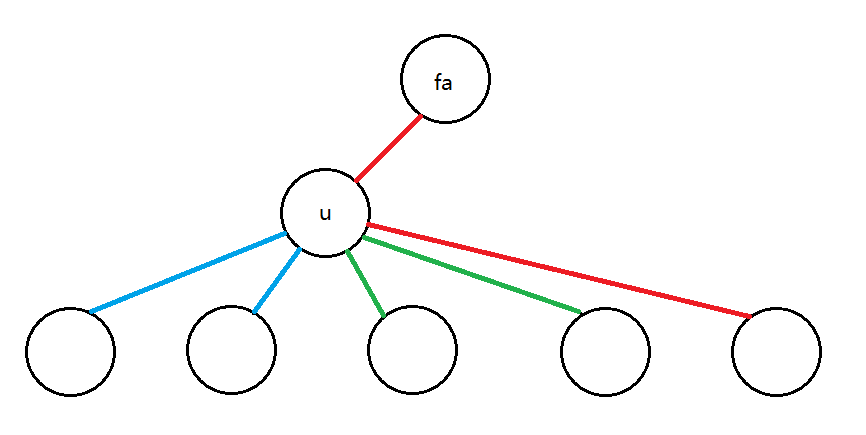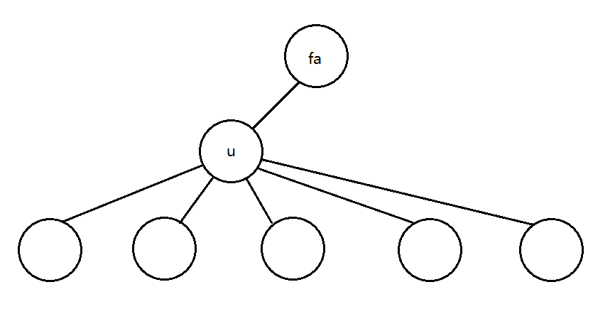 如果是奇数个子结点,那么两两配对后就会剩下一个结点,我们把剩下的这个结点和$fa$结点配对即可,如图: