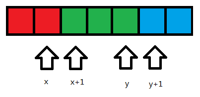 | #include<algorithm> #include<iostream> #include<iomanip> #include<cstring> #include<climits> #include<vector> #include<cstdio> #include<cmath> #include<queue> using namespace std; typedef long long LL; inline const LL Get_Int() { LL num=0,bj=1; char x=getchar(); while(x<'0'||x>'9') { if(x=='-')bj=-1; x=getchar(); } while(x>='0'&&x<='9') { num=num*10+x-'0'; x=getchar(); } return num*bj; } const int maxn=100005; struct Tree { int left,right; LL min; Tree(int l=0,int r=0,LL m=LLONG_MAX/2):left(l),right(r),min(m) {} }; struct Segment_Tree { Tree tree[maxn*4]; #define ls index<<1 #define rs index<<1|1 void build(int index,int Left,int Right) { tree[index]=Tree(Left,Right); if(Left==Right)return; int mid=(Left+Right)>>1; build(ls,Left,mid); build(rs,mid+1,Right); } void push_up(int index) { tree[index].min=min(tree[ls].min,tree[rs].min); } void modify(int index,int target,LL v) { if(target>tree[index].right||target<tree[index].left)return; if(tree[index].left==tree[index].right) { tree[index].min=min(tree[index].min,v); return; } modify(ls,target,v); modify(rs,target,v); push_up(index); } LL query(int index,int Left,int Right) { if(Left>tree[index].right||Right<tree[index].left)return LLONG_MAX/2; if(Left<=tree[index].left&&Right>=tree[index].right)return tree[index].min; return min(query(ls,Left,Right),query(rs,Left,Right)); } } st[7]; int n; LL x,sum[maxn],sum2[maxn],ans=LLONG_MAX; pair<LL,LL> bound(int pos,int id) { LL up,down; if(id==1) { down=ceil((sum[n]+sum[pos])/2.0); up=2*sum[pos]; } if(id==2) { down=sum[n]-sum[pos]; up=(sum[n]+sum[pos])/2.0; } if(id==3) { down=ceil((sum[n]+sum[pos])/2.0); up=sum[n]-sum[pos]; } if(id==4) { down=max(2*sum[pos],sum[n]-sum[pos]); up=1e17; } if(id==5) { down=-1e17; up=min(2*sum[pos],sum[n]-sum[pos]); } if(id==6) { down=2*sum[pos]; up=(sum[n]+sum[pos])/2.0; } return make_pair(down,up); } LL segment_val(int pos,int id) { if(id==1)return sum[pos]+x*pos; if(id==2)return x*pos-sum[pos]; if(id==3)return sum[pos]+x*pos; if(id==4)return 2*sum[pos]+x*pos; if(id==5)return x*pos-2*sum[pos]; if(id==6)return x*pos-sum[pos]; } LL get_ans(int pos,int id) { if(id==1)return sum[pos]-sum[n]-x*pos; if(id==2)return 2*sum[pos]-x*pos; if(id==3)return -2*sum[pos]-x*pos; if(id==4)return -sum[pos]-x*pos-sum[n]; if(id==5)return sum[n]+sum[pos]-x*pos; if(id==6)return sum[n]-sum[pos]-x*pos; } void Solve(int pos,int id) { pair<LL,LL> tmp=bound(pos,id); LL down=tmp.first,up=tmp.second; int l=lower_bound(sum2+1,sum2+n+1,down)-sum2,r=upper_bound(sum2+1,sum2+n+1,up)-sum2-1; if(l>r)return; ans=min(ans,get_ans(pos,id)+st[id].query(1,l,r)); } struct number { LL s; int id; bool operator < (const number& b) const { return s<b.s; } } a[maxn]; int M[maxn]; int main() { n=Get_Int(); for(int i=1; i<=n; i++) { sum[i]=a[i].s=a[i-1].s+Get_Int(); a[i].id=i; } x=Get_Int(); sort(a+1,a+n+1); for(int i=1; i<=n; i++)M[a[i].id]=i,sum2[i]=a[i].s; for(int i=1; i<=6; i++)st[i].build(1,1,n); for(int i=n-2; i>=1; i--) for(int j=1; j<=6; j++) { st[j].modify(1,M[i+1],segment_val(i+1,j)); Solve(i,j); } printf("%lld\n",ans); return 0; }