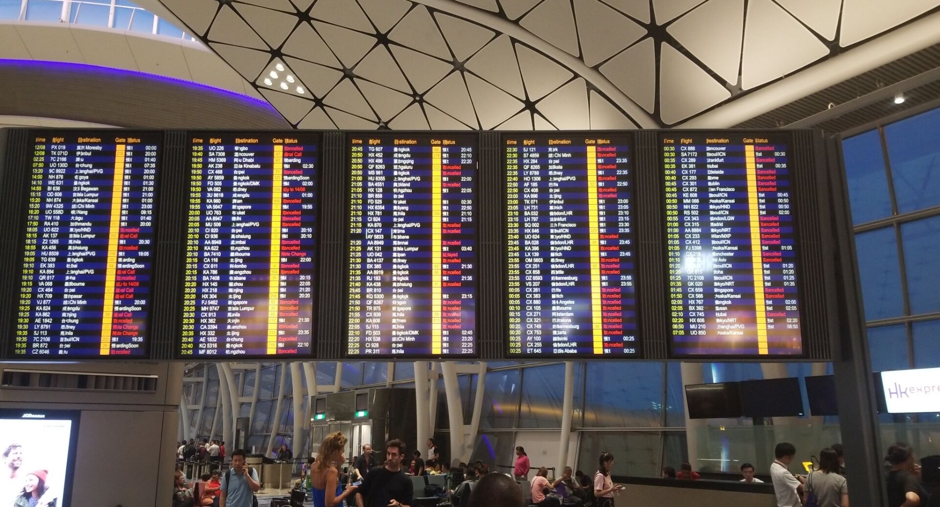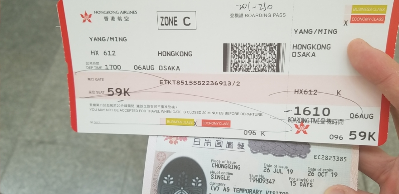 由于距离下午5点钟飞大阪的航班还有相当长的一段时间,经过耐心等候后开始办理转机手续,就在这时,问题出现了,8月5日飞往大阪的航班HX612取消。