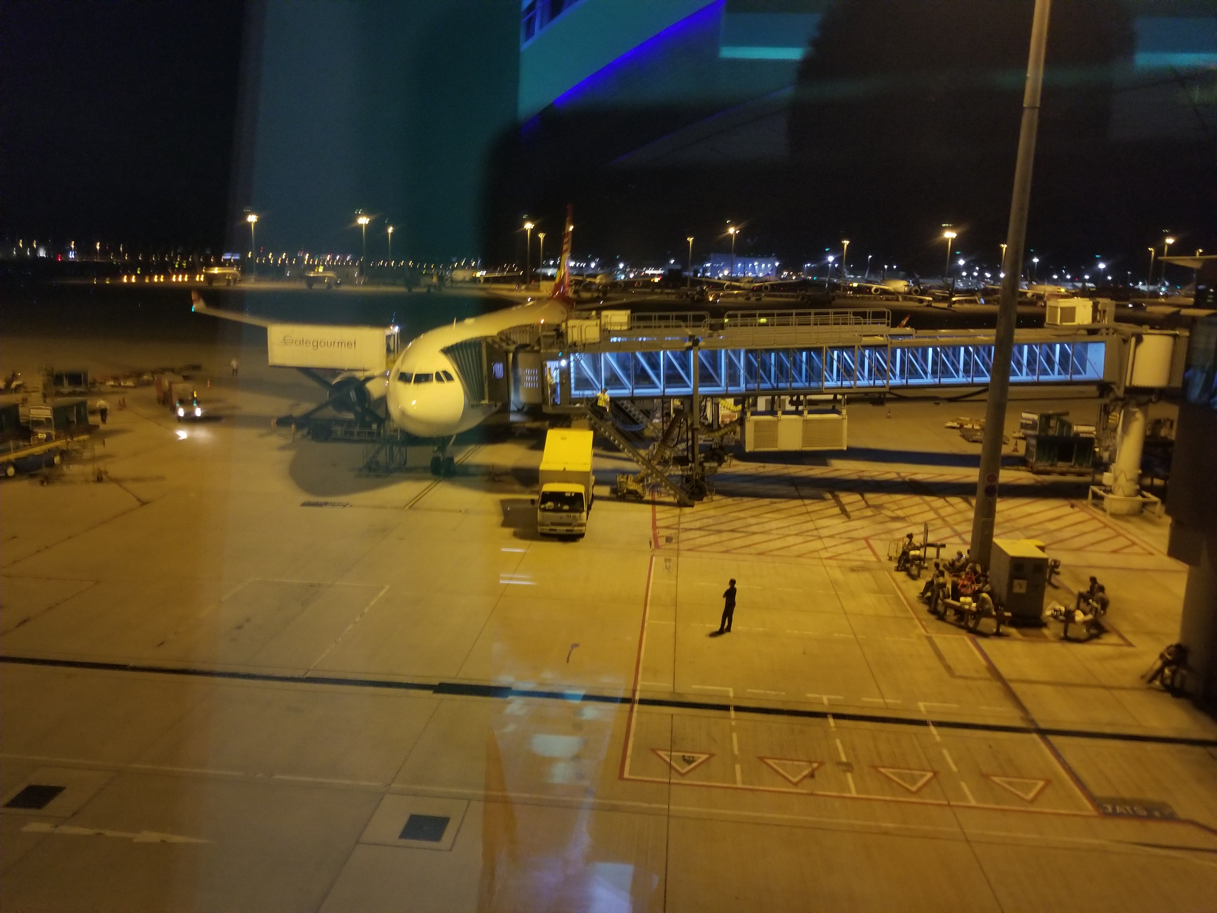 不久,我们的航班登机口确定了,于是航班取消的可能性大大降低了。