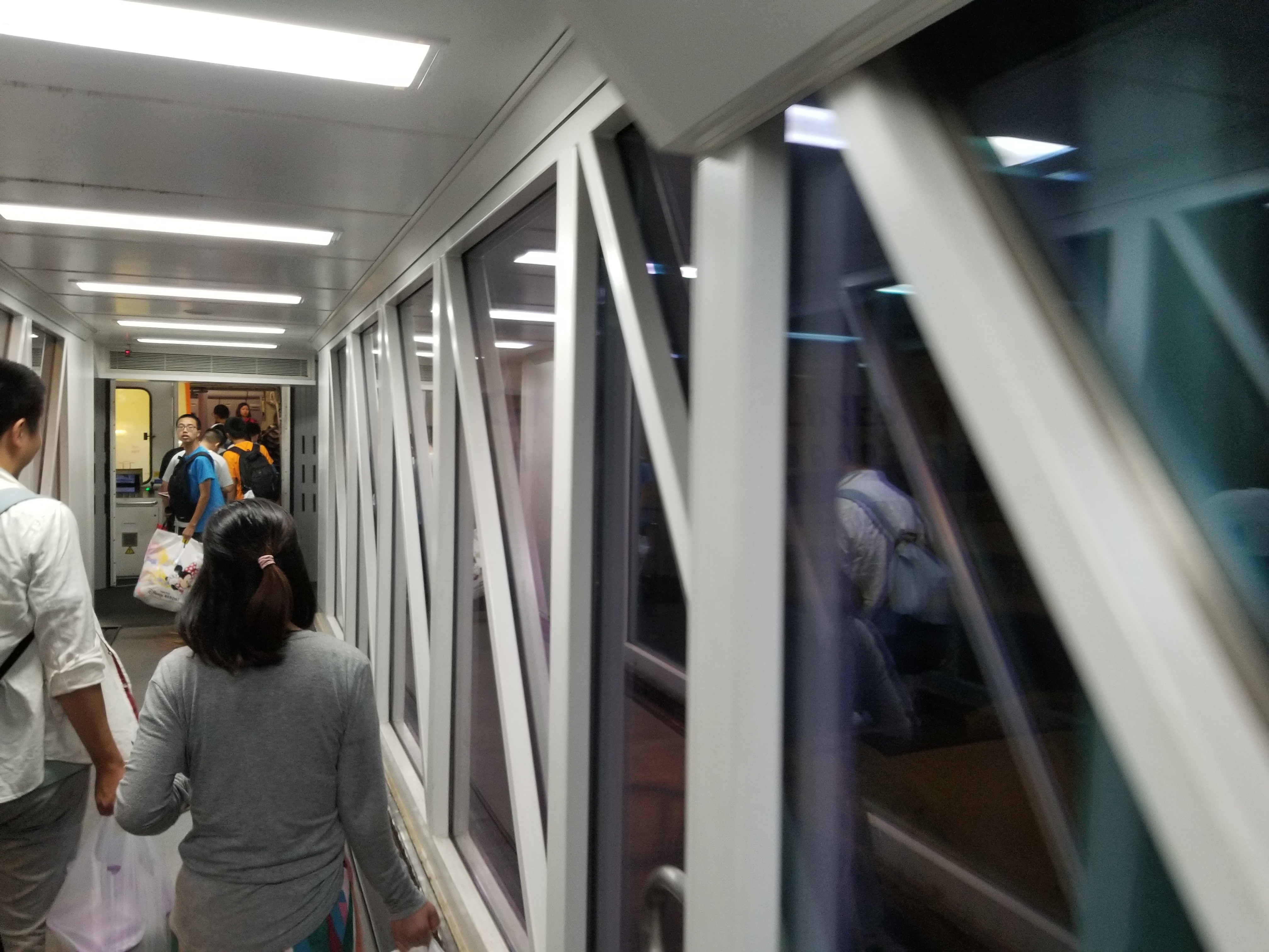 抵达香港机场后,需要机场巴士将我们载到候机厅,我们等待了1个小时左右,原因是:“机场繁忙”