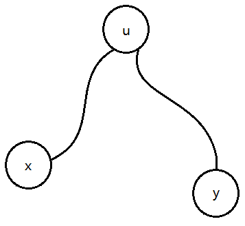 我们将$x\rightarrow y$的合法路径进行分治,成为过根结点$u$的两条路径$[x,u]$与$(u,y]$,分别用$Dist1[x]$与$Dist2[y]$表示它们的路径权值和,用$Len[x]$表示路径长度。