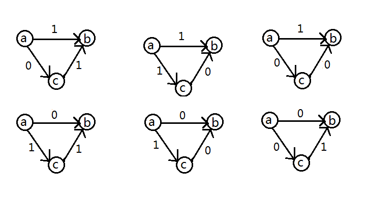 因此我们将统计三元组的任务转化为了统计二元组的数目,设一个点边权$1$的边入度为$in1$,出度为$out1$,其余与此类似。