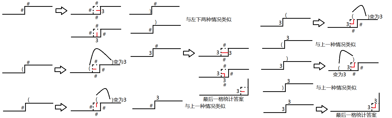 int Find_After(int s,int x) { int delta=1; for(int i=x+1; i<=m; i++) { int val=(s>>bit(i))&3; if(val==1)delta++; if(val==2)delta--; if(!delta)return i; } }