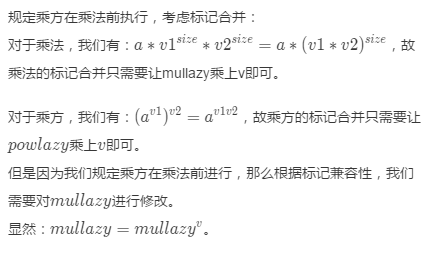 | #include<algorithm> #include<iostream> #include<iomanip> #include<cstring> #include<cstdlib> #include<vector> #include<cstdio> #include<cmath> #include<queue> using namespace std; typedef long long LL; inline const int Get_Int() { int num=0,bj=1; char x=getchar(); while(x<'0'||x>'9') { if(x=='-')bj=-1; x=getchar(); } while(x>='0'&&x<='9') { num=num*10+x-'0'; x=getchar(); } return num*bj; } const int maxn=50005*2; const LL mod=1000000007; struct Tree { int left,right; LL mul,size; LL mullazy,powlazy; Tree(LL l=0,LL r=0,LL s=0):left(l),right(r),size(s),mul(1),mullazy(1),powlazy(1) {} }; LL Quick_Pow(LL a,LL b) { LL ans=1; while(b>0) { if(b&1)ans=ans*a%mod; b>>=1; a=a*a%mod; } return ans; } struct Segment_Tree { Tree tree[maxn*4]; #define ls index<<1 #define rs index<<1|1 void build(int index,int Left,int Right,LL* a) { tree[index]=Tree(Left,Right); if(Left==Right) { tree[index]=Tree(Left,Right,a[Left]); return; } int mid=(Left+Right)>>1; build(ls,Left,mid,a); build(rs,mid+1,Right,a); push_up(index); } void push_down(int index) { tree[ls].powlazy=tree[ls].powlazy*tree[index].powlazy%(mod-1); tree[rs].powlazy=tree[rs].powlazy*tree[index].powlazy%(mod-1); tree[ls].mullazy=(Quick_Pow(tree[ls].mullazy,tree[index].powlazy)*tree[index].mullazy)%mod; tree[rs].mullazy=(Quick_Pow(tree[rs].mullazy,tree[index].powlazy)*tree[index].mullazy)%mod; tree[ls].mul=Quick_Pow(tree[ls].mul,tree[index].powlazy)*Quick_Pow(tree[index].mullazy,tree[ls].size)%mod; tree[rs].mul=Quick_Pow(tree[rs].mul,tree[index].powlazy)*Quick_Pow(tree[index].mullazy,tree[rs].size)%mod; tree[index].powlazy=tree[index].mullazy=1; } void push_up(int index) { tree[index].mul=tree[ls].mul*tree[rs].mul%mod; tree[index].size=tree[ls].size+tree[rs].size; } void modify(int index,int Left,int Right,LL v) { if(Left>tree[index].right||Right<tree[index].left)return; if(Left<=tree[index].left&&Right>=tree[index].right) { tree[index].mul=tree[index].mul*Quick_Pow(v,tree[index].size)%mod; tree[index].mullazy=tree[index].mullazy*v%mod; return; } push_down(index); modify(ls,Left,Right,v); modify(rs,Left,Right,v); push_up(index); } void modify2(int index,int Left,int Right,LL v) { if(Left>tree[index].right||Right<tree[index].left)return; if(Left<=tree[index].left&&Right>=tree[index].right) { tree[index].mul=Quick_Pow(tree[index].mul,v); tree[index].mullazy=Quick_Pow(tree[index].mullazy,v); tree[index].powlazy=tree[index].powlazy*v%(mod-1); return; } push_down(index); modify2(ls,Left,Right,v); modify2(rs,Left,Right,v); push_up(index); } LL query(int index,int Left,int Right) { if(Left>tree[index].right||Right<tree[index].left)return 1; if(Left<=tree[index].left&&Right>=tree[index].right)return tree[index].mul; push_down(index); return query(ls,Left,Right)*query(rs,Left,Right)%mod; } } st; struct Query { int opt,x,y,v; } q[maxn]; LL n,a[maxn],v[maxn],cnt=0; int main() { n=Get_Int(); for(int i=1; i<=n; i++) { q[i].opt=Get_Int(); if(q[i].opt!=2) { a[++cnt]=q[i].x=Get_Int(); a[++cnt]=q[i].y=Get_Int(); q[i].v=Get_Int(); } else a[++cnt]=q[i].x=Get_Int(),a[++cnt]=q[i].y=Get_Int(); } sort(a+1,a+cnt+1); int tot=unique(a+1,a+cnt+1)-a-1; for(int i=1; i<=n; i++) { q[i].x=lower_bound(a+1,a+tot+1,q[i].x)-a; q[i].y=lower_bound(a+1,a+tot+1,q[i].y)-a; } for(int i=1; i<tot; i++)v[i]=a[i+1]-a[i]; st.build(1,1,tot-1,v); for(int i=1; i<=n; i++) { if(q[i].opt==0)st.modify(1,q[i].x,q[i].y-1,q[i].v); else if(q[i].opt==1)st.modify2(1,q[i].x,q[i].y-1,q[i].v); else printf("%lld\n",st.query(1,q[i].x,q[i].y-1)); } return 0; }