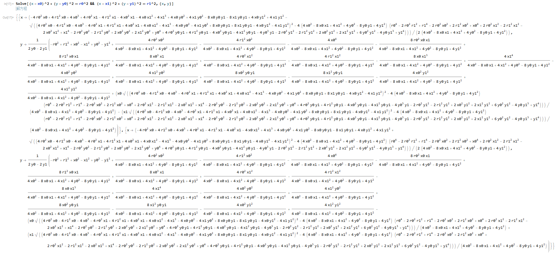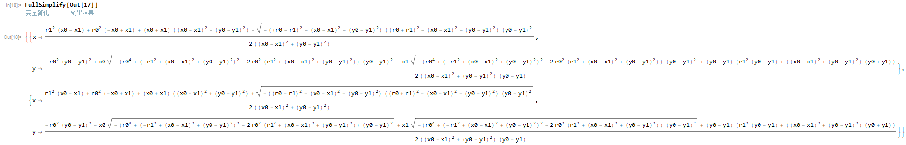 根据mathematica软件联立圆方程得: