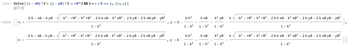 根据mathematica联立圆与直线方程得: