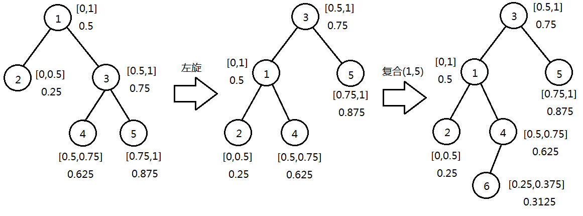 struct Tree { int child[2],father; int size; Data val; }; struct ScapeGoat_Tree { Tree tree[maxn]; int root,size; #define ls(x) tree[x].child[0] #define rs(x) tree[x].child[1] #define fa(x) tree[x].father #define val(x) tree[x].val #define size(x) tree[x].size bool balance(int index) { return size(index)*0.7>=max(size(ls(index)),size(rs(index))); } bool checkson(int index) { return rs(fa(index))==index; } void push_up(int index) { size(index)=size(ls(index))+1+size(rs(index)); } int cnt,a[maxn]; void dfs(int index) { if(ls(index))dfs(ls(index)); a[++cnt]=index; if(rs(index))dfs(rs(index)); } int build(int Left,int Right,double left,double right) { if(Left>Right)return 0; int mid=(Left+Right)>>1,pos=a[mid]; double midv=(left+right)/2; Val[pos]=midv; ls(pos)=build(Left,mid-1,left,midv); rs(pos)=build(mid+1,Right,midv,right); fa(ls(pos))=fa(rs(pos))=pos; push_up(pos); return pos; } void rebuild(int index,double left,double right) { cnt=0; dfs(index); int father=fa(index),side=checkson(index); int pos=build(1,cnt,left,right); tree[father].child[side]=pos; fa(pos)=father; if(index==root)root=pos; } int insert(int &index,double left,double right,Data val) { double midv=(left+right)/2; if(!index) { index=++size; val(index)=val; Val[index]=midv; size(index)=1; return index; } int tmp; if(val==val(index))return index; else { size(index)++; if(val<val(index))tmp=insert(ls(index),left,midv,val); else tmp=insert(rs(index),midv,right,val); fa(ls(index))=fa(rs(index))=index; } if(!balance(index)) { _pos=index; posl=left; posr=right; } return tmp; } } sgt;