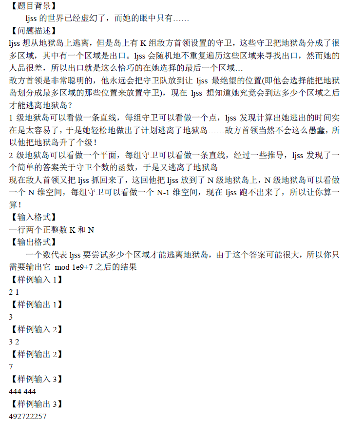 设$f[i,j]$表示$j$维空间中,$i$条超平面能将空间分为最多的部分数。