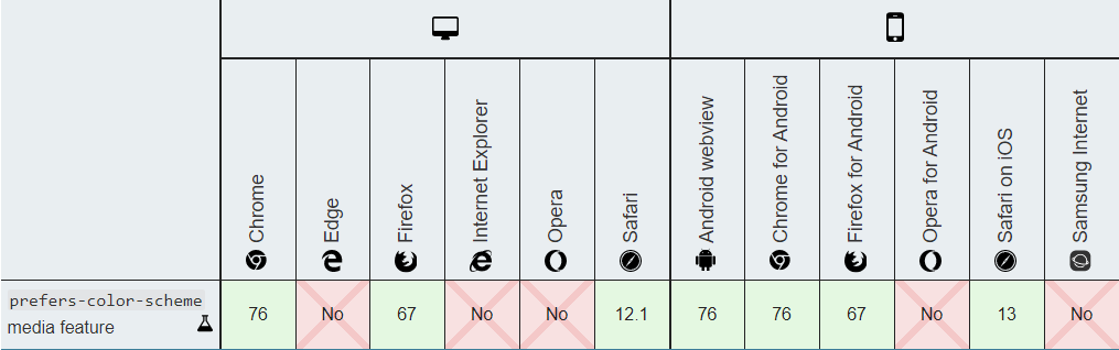 「通知」博客已添加夜间(暗色调)模式 发表于 2020-02-02 更新于 2020-07-12 分类于 Hexo 阅读次数: Valine: 利用prefers-color-scheme给博客加了个夜间模式。博客将无缝的选择与用户设备相匹配的主题。 目前支持的环境有:iOS 13, macOS 10.14(Mojave), Android 10, Windows 1809。支持的浏览器有: 使用方法:只需更改系统主题,即可切换夜间模式,无需刷新或者点击网页。如:在Windows中修改主题颜色:或调整系统环境至夜间模式。 相关文章 为您的Hexo博客添加Hitokoto一言功能 「通知」回复评论的新邮件提醒已更新 「独家」给你的Hexo博客添加萌萌哒看板娘(✪ω✪) Hexo-NexT主题自定义配置高阶教程 「公告/悲报」评论回复邮件通知可能失效 姥爷们赏瓶冰阔落吧~ 打赏 微信支付 支付宝 本文作者: Bill Yang 本文链接: https://blog.bill.moe/dark-mode/ 版权声明: 本博客所有文章除特别声明外,均采用 BY-NC-SA 许可协议。转载请注明出处!